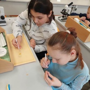 20 февраля 2023 года на уроке биологии ребята провели исследование кожных покровов различных групп животных. Целью исследования было выявить сходства и различия в покровах тела животных. При выполнении работы была использован цифровой микроскоп, препараты шерсти различных животных.